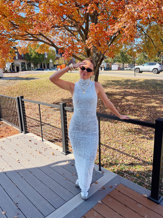Fuzzy Striped Midi Dress