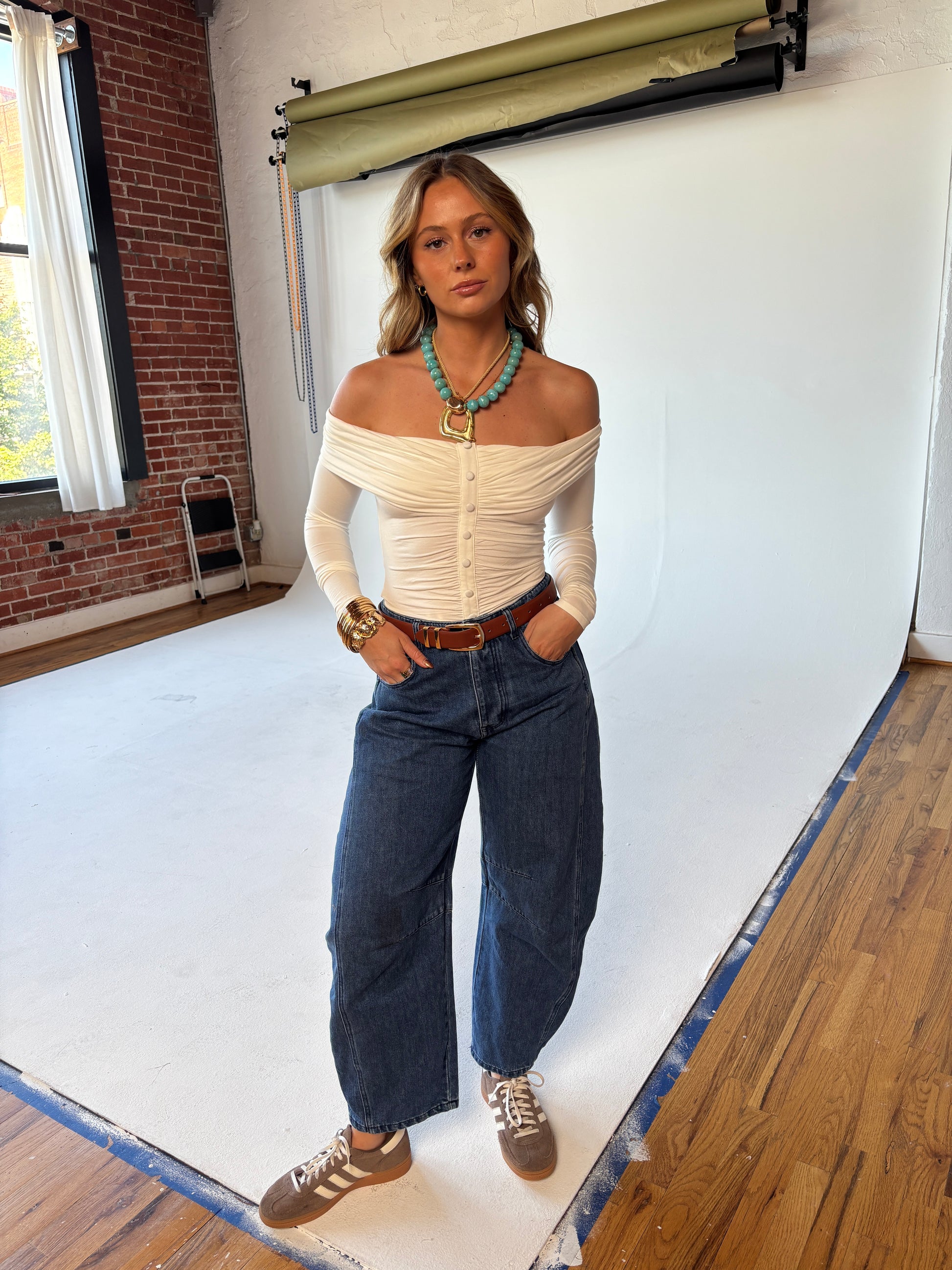 Fits true to size. Model is wearing a size small and is 5’4 with a 34’ bust and 25’ waist.