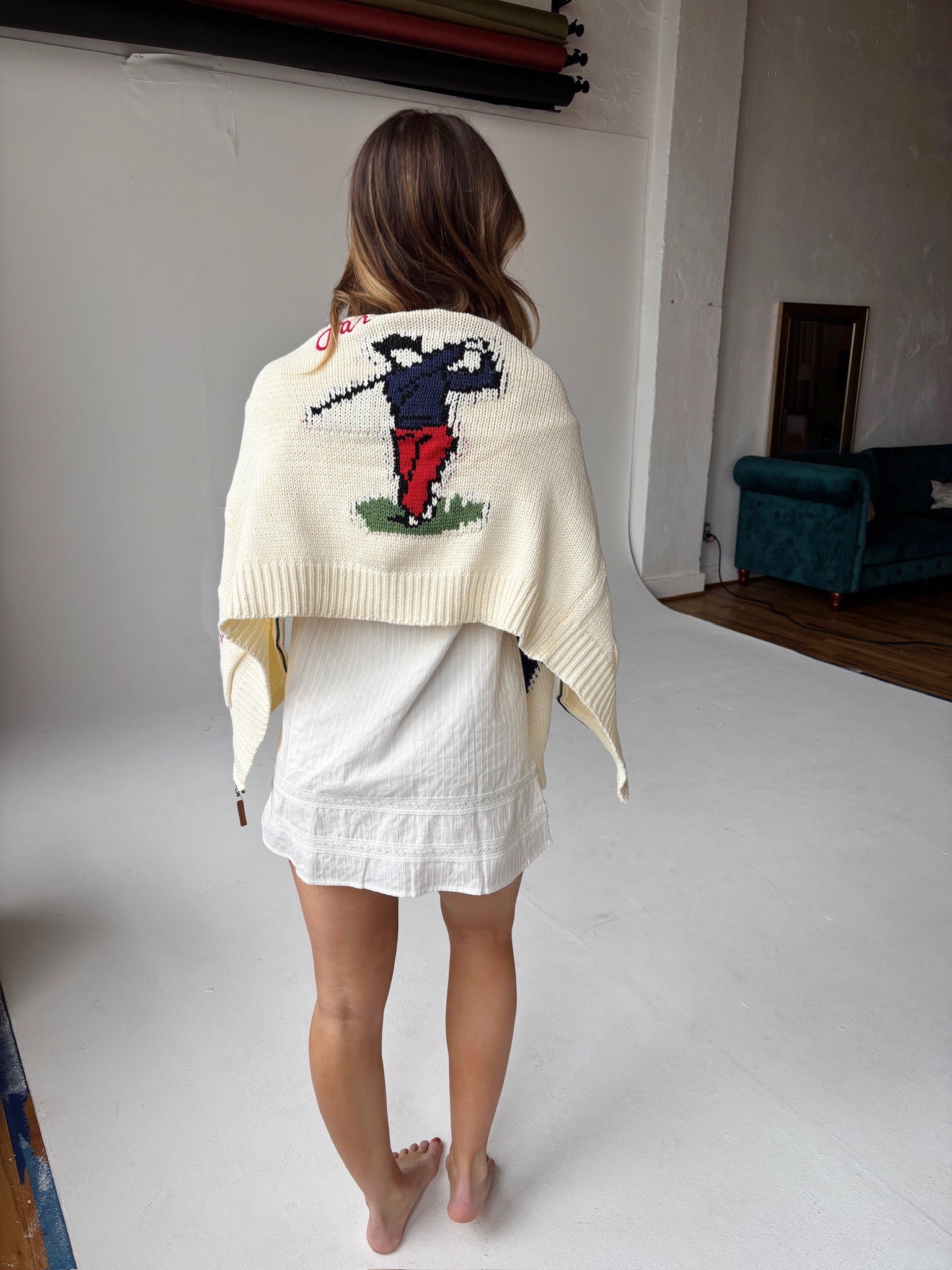 Runs shorter, size up if in between sizes. Model is wearing a size small and is 5'4 with a 34' bust and 25' waist.