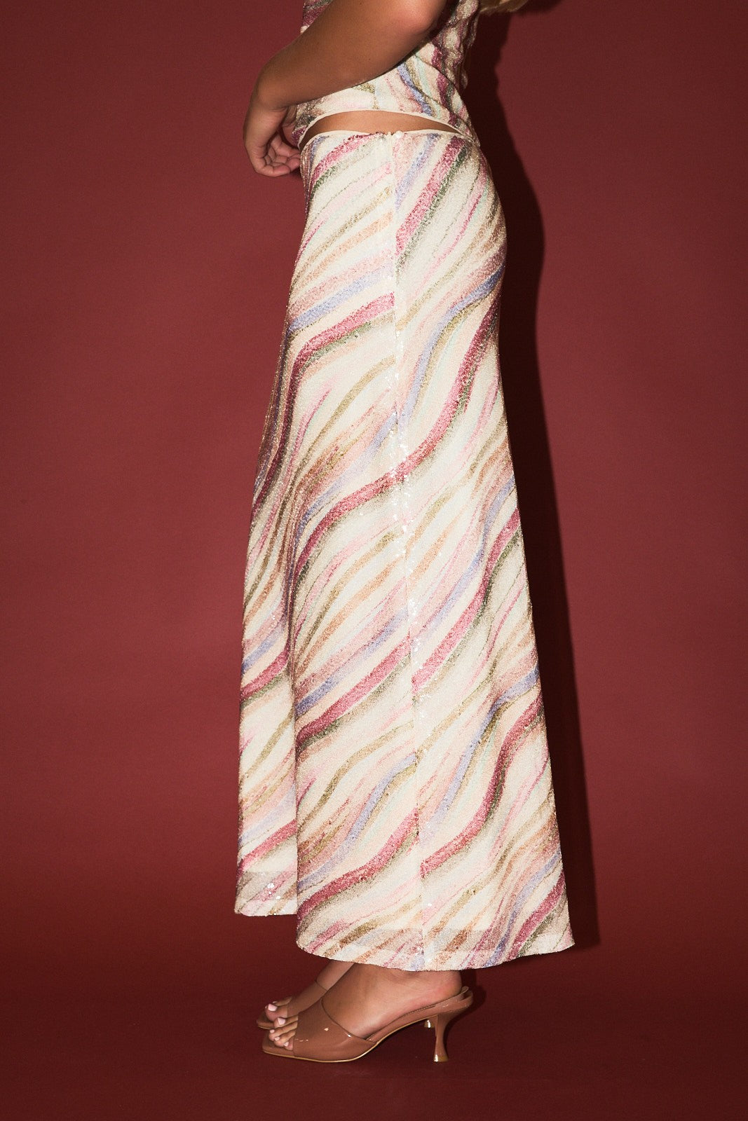 Mid Rise Stripe Sequin Skirt