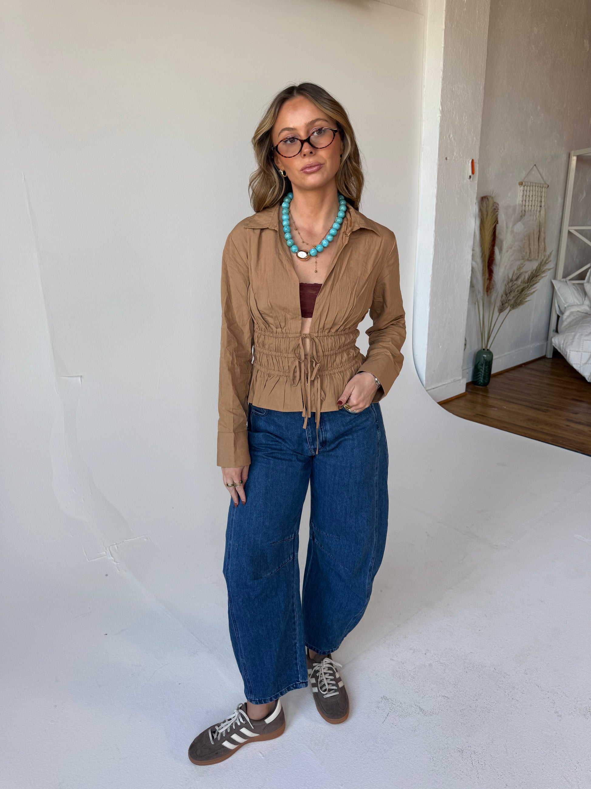 Fits true to size. Model is wearing a size small and is 5’4 with a 34’ bust and 25’ waist.