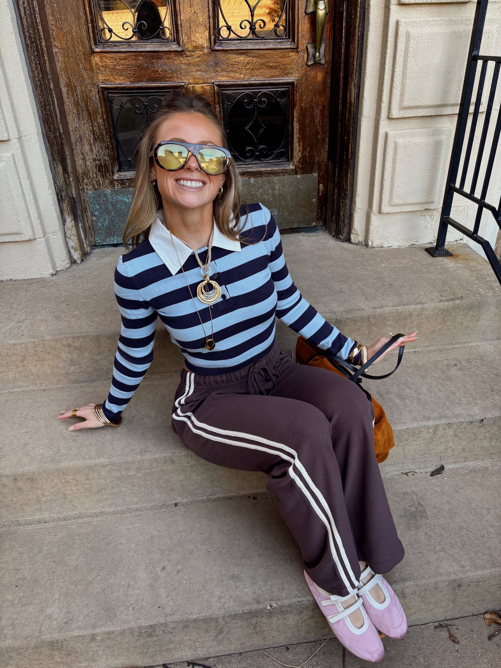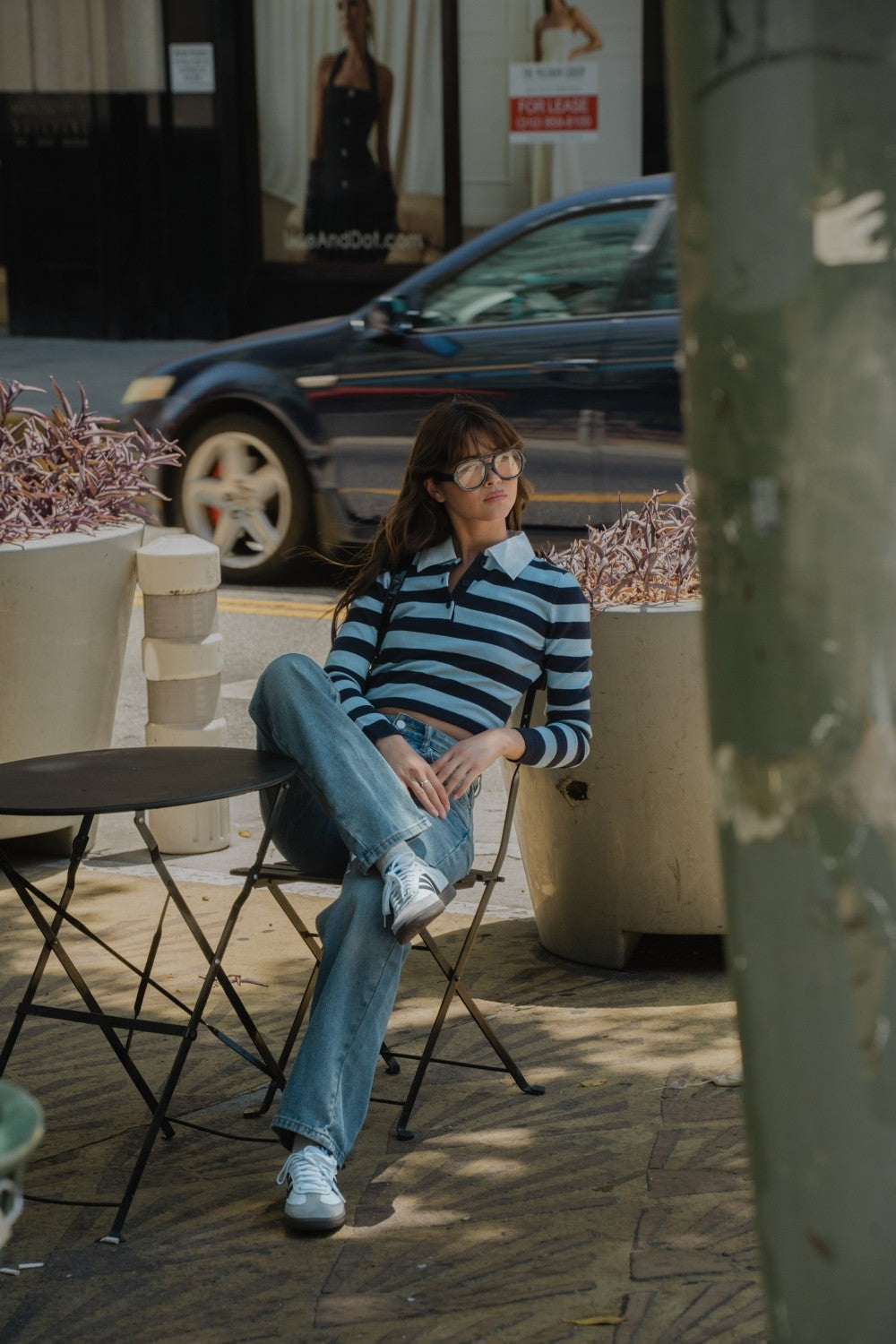 Cropped fit. Faith is wearing a size small and is 5'4 with a 34' bust and 25' waist.