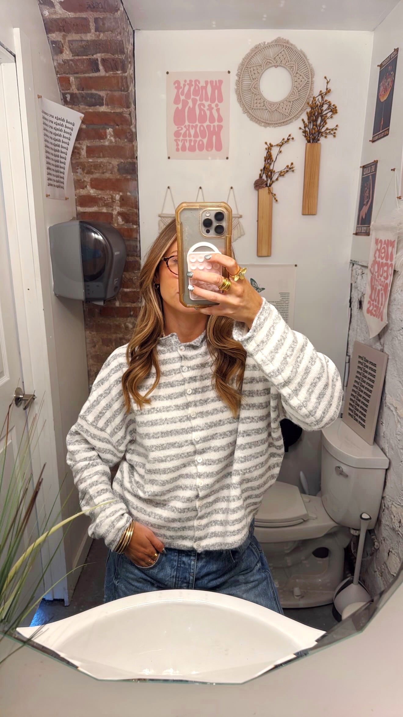 Relaxed fit. Faith is wearing a size small and is 5’4 with a 34’ bust and 25’ waist.