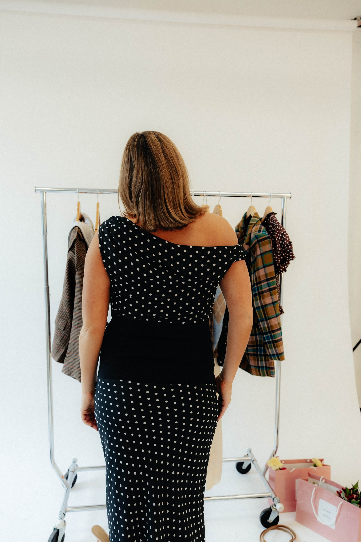 Cowl Neck Polka Dot Rib Finished Top & Midi Skirt